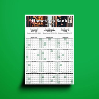 Custom imprinted calendars are a successful way to promote your company or organization on a daily basis all year; on the office wall or directly on your client’s desk.- Imprint area: 18 1/8" x 4 11/16"